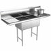 Prepline 52" Stainless Steel Two Compartment Commercial Sink with Left and Right Drainboard - 14" x 16" Bowls