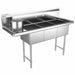 Prepline 56" Stainless Steel Three Compartment Commercial Sink with Left Drainboard - 14" x 16" Bowls