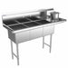 Prepline 56" Stainless Steel Three Compartment Commercial Sink with Right Drainboard - 14" x 16" Bowls