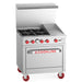 The Cookline commercial range with griddle is everything you need to streamline cooking operations in your Kitchen. It features a 12" and 3/4" thick griddle where you can grill a range of products. Each burner has a heavy duty cast iron grate that conveniently supports your fry pans, sauce pans, and other commercial cookware. With a 250F to 550F adjustable temperature range, you have enough leeway to accommodate any recipe in your oven - whether you are looking to bake a cake or roast a chicken. 2 chrome plated racks included in oven can be arranged in four configurations for greater flexibility. Bring long term reliability and durability to your commercial kitchen with the Cookline 4 burner range