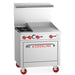 24" GriddleThis commercial gas stove comes with a 24" right side griddle with side splashes to contain grease. Easily and conveniently prepare lunch items such as bacon, burgers, cheesesteaks, and more.