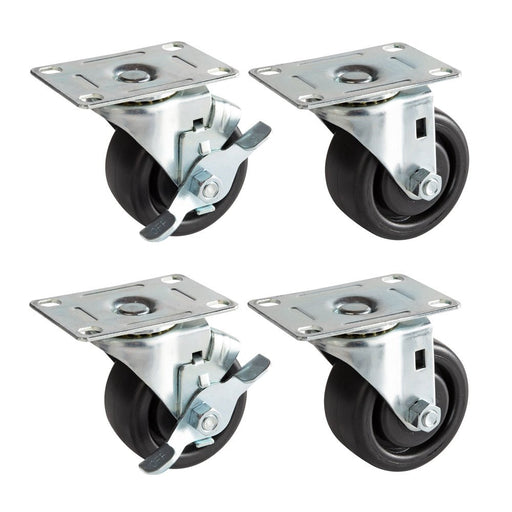 PFC-4-SB 4" Black Plate Casters with Side Brake, Set of 4