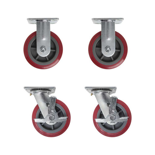 PFC-4-SBR 4" Red Plate Casters with Side Brake - Set of 4