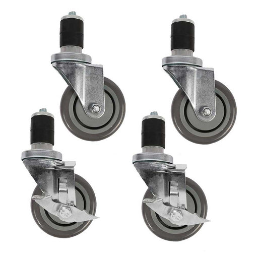 PreplineSwivel stem expanding casters 2 with brakes and 2 without brakes Tread made of PU 1.42" plastic expanding Compatible with many work tabl...