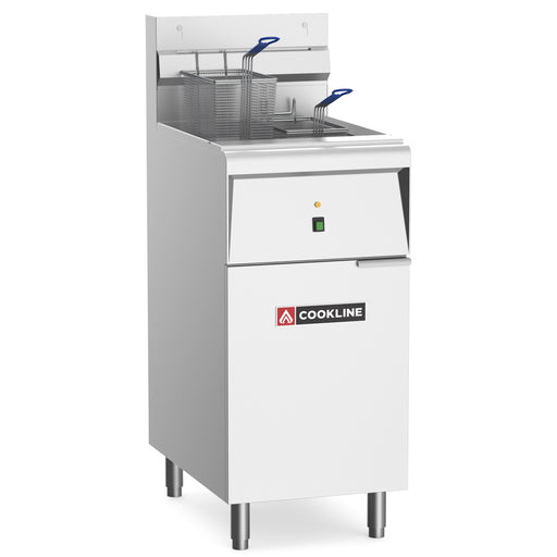 Electric deep fryer Stainless steel fryer pot, door, backsplash/flute Aluminized sides Durable temperature probe Wide cold zo...