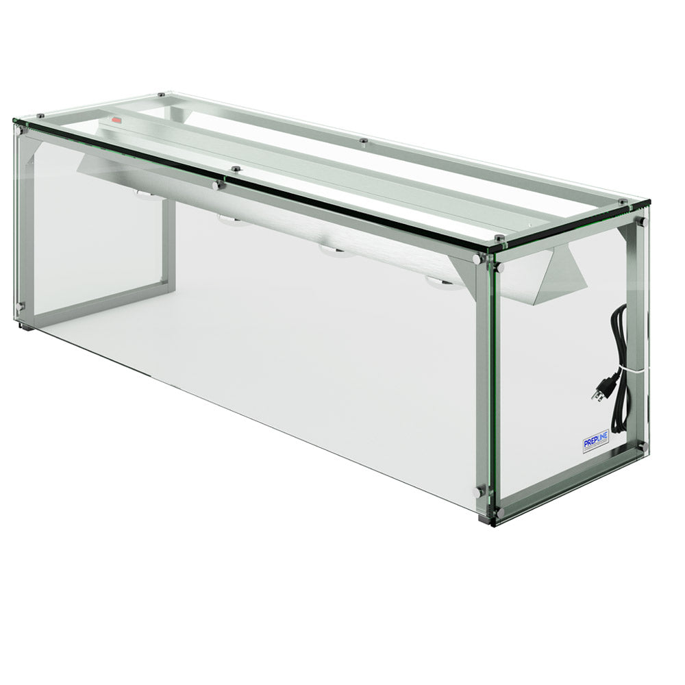 The Prepline PSG-LT series tempered glass sneeze guards are perfect for safely showcasing your warm foods under attractive lighting for improved visibility. The included heat bulbs light your food for increased visibility but also add top down heat to ensure your foods stay at food safe temperatures.